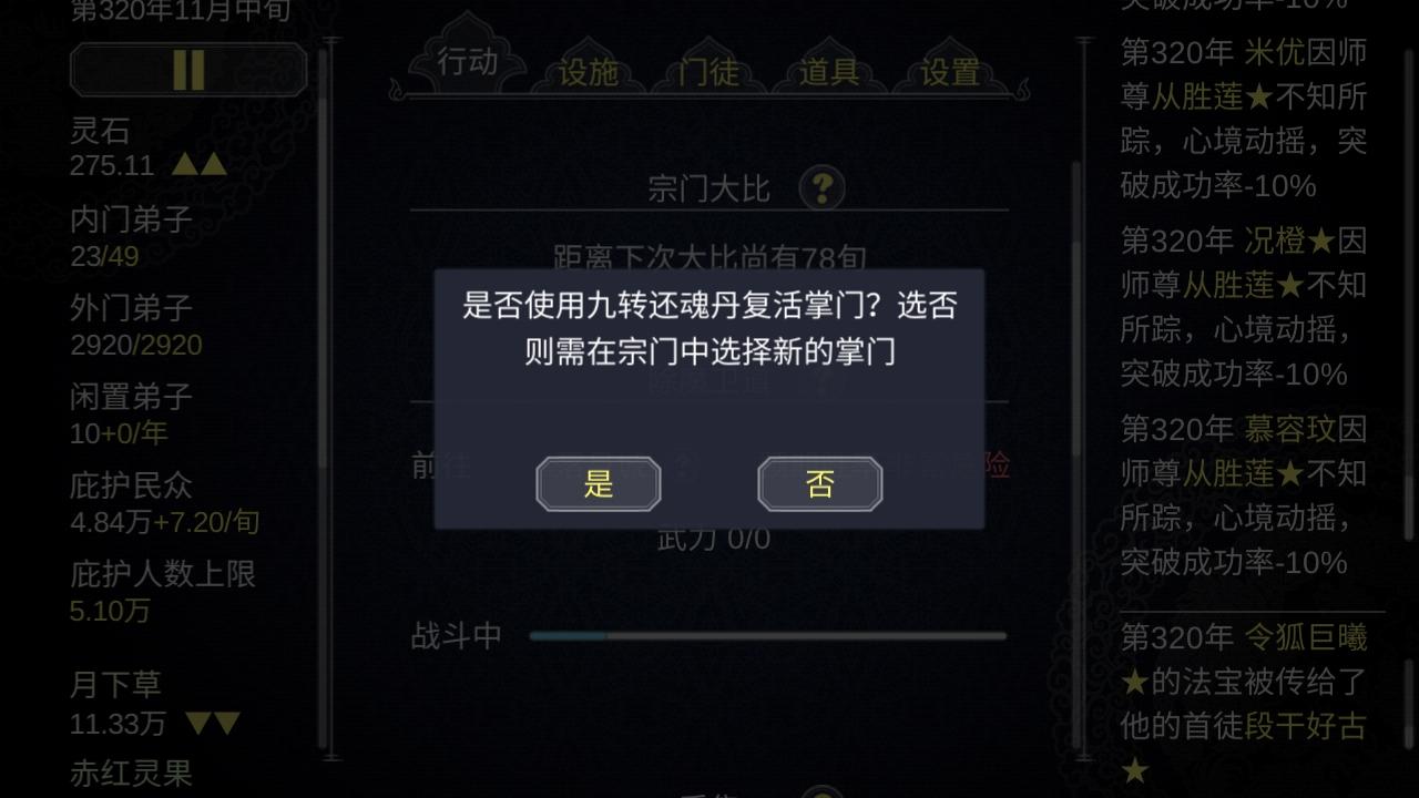 如图所示,我的掌门栽了两次了,每次一到320年的时候,就会有魔修上门,然后掌门和掌门道侣就会双双惨死。