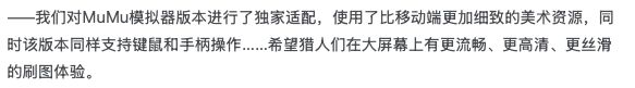 我使用其他地方下载的安卓端的游戏APK,导进MUMU模拟器是能运行的,但是没适配键鼠操作,完全就是手游的画面,完全没法电脑玩。