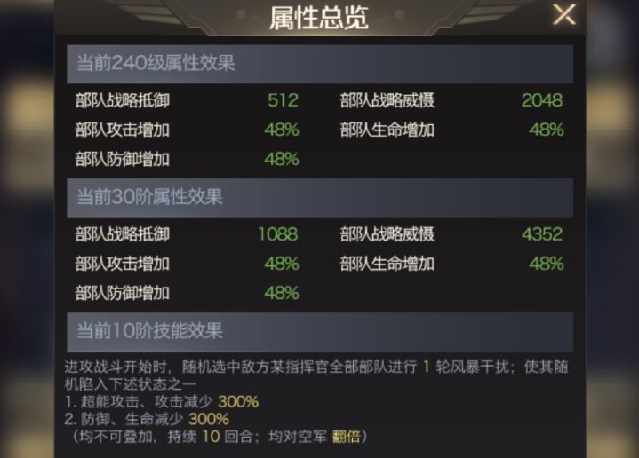 3.建议勤快一点做各种任务和小活动积累新材料吧,幽灵基地、联盟宝藏、军演奖励、盟军祝福兑换、星海商店里等都有新材料可以获取。超级武器系统不仅增加了指挥官的部队三维属性,新引进的战略抵御和战略威慑属性在未来的作战中也会发挥很大的作用,详细的测试在实战积累一定数据后小编再来和大家分享交流。