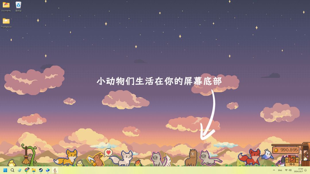 《动物栏:桌面牧场》是一款位于屏幕底端,陪伴您工作与学习的牧场放置游戏。你可以购买抚育数只小动物,收集它们成年后掉落的金币赚取利润,以扩充你的牧场。在您自我提升、休闲娱乐时,小动物也伴随着你一起成长。