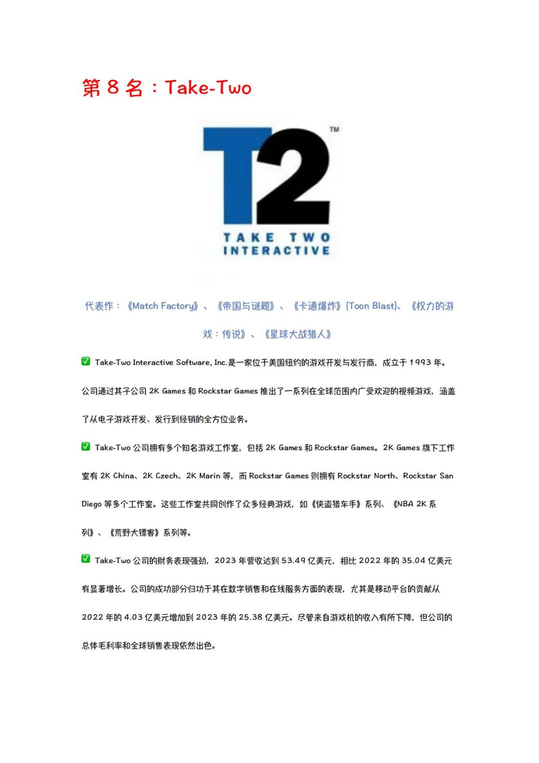 第8名:Take-Two,代表作:《Match Factory》、《帝国与谜题》、《卡通爆炸》(Toon Blast)、《权力的游戏:传说》、《星球大战猎人》