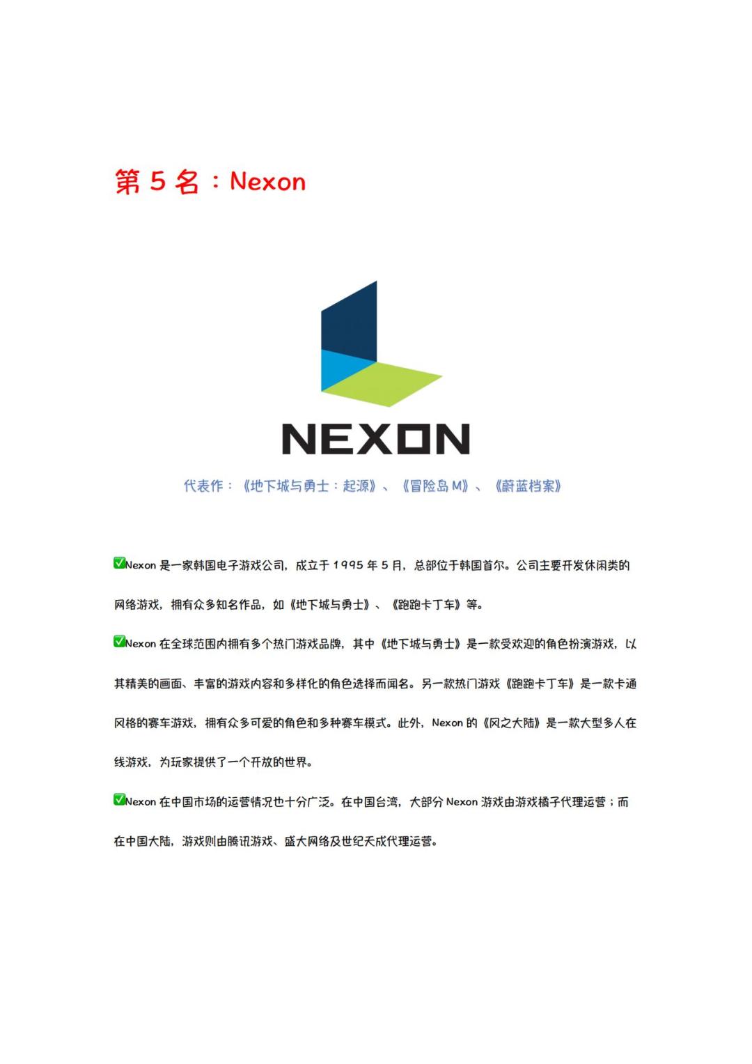 第5名:Nexon,代表作:《地下城与勇士:起源》、《冒险岛M》、《蔚蓝档案》