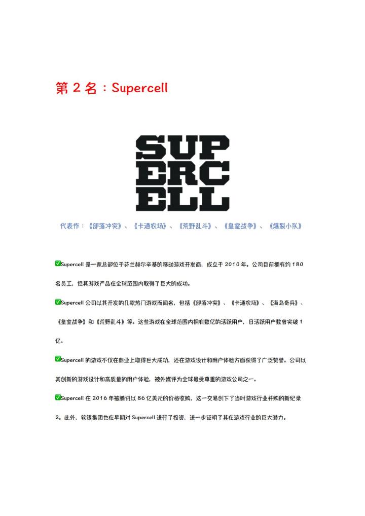 第2名:Supercell,代表作:《部落冲突》、《卡通农场》、《荒野乱斗》、《皇室战争》、《爆裂小队》