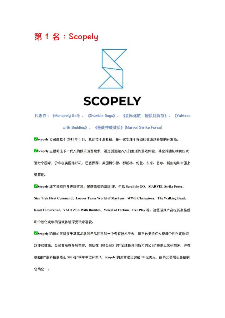 第1名:Scopely,代表作:《Monopoly Go!》、《Stumble Guys》、《星际迷航:舰队指挥官》、《Yahtzee with Buddies》、《漫威神威战队》(Marvel Strike Force)