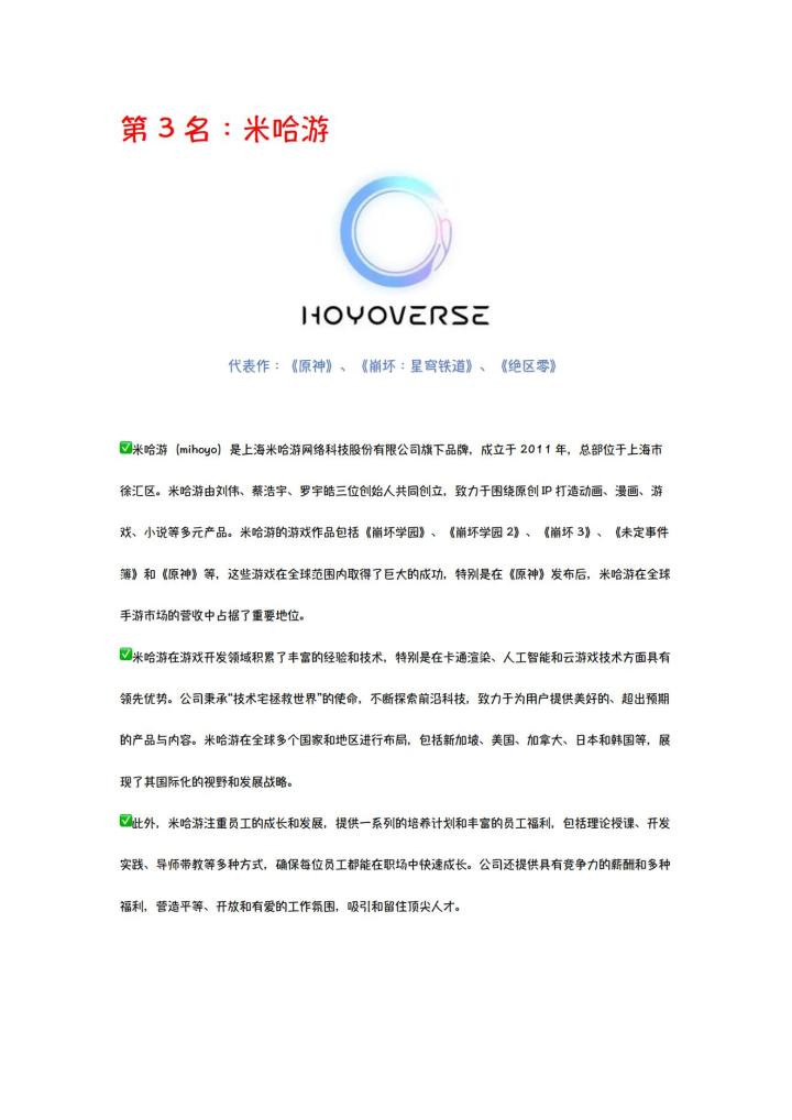 第3名:米哈游,代表作:《原神》、《崩坏:星穹铁道》、《绝区零》