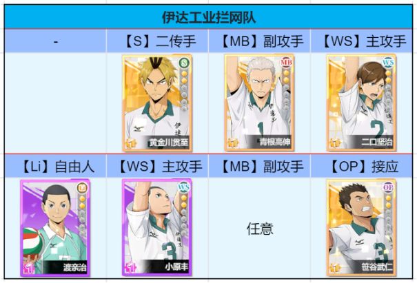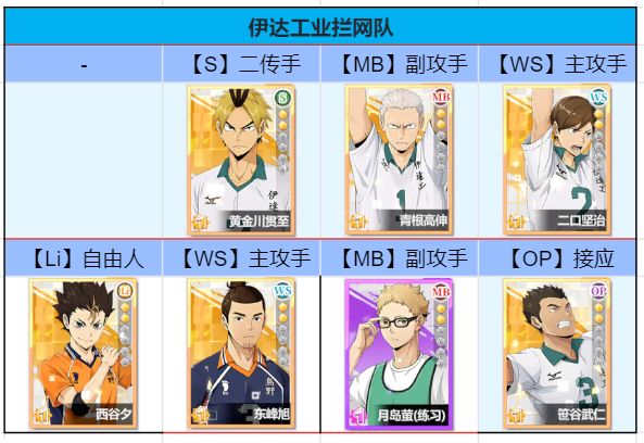 伊达工业高中是一个注重与拦网的队伍,而拦网说白了就是阵容的防御能力,