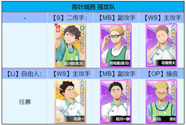 从国服现有的环境来看,青城队只需要凑齐四个SR的队员就可以成型,而主攻手「岩泉一」的强度在后期非常可靠。