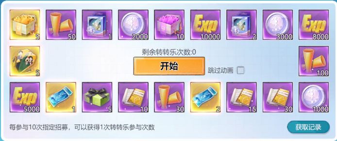 卡池招募每10次获取一次转转乐次数,累计32次保底可以兑换一个<长高高牛奶>