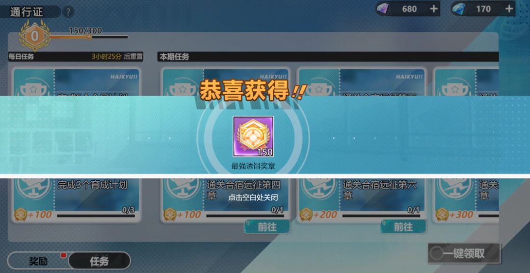 完成主线与养成进度领取奖励