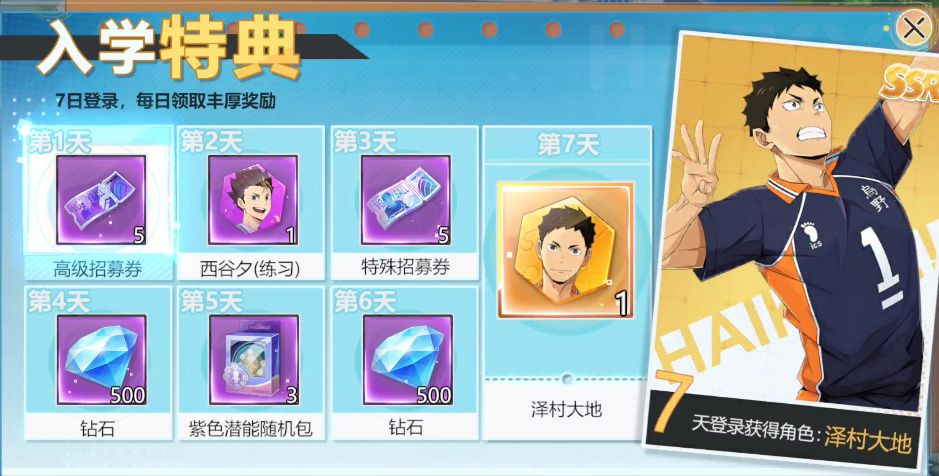 🔺四,入学典礼七日登录领SSR泽村大地