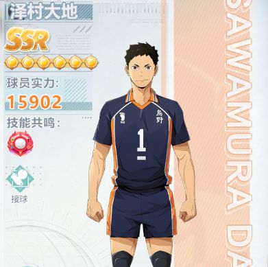 乌野排球队的团队支柱泽村大地,是开荒期最为实用的接球手。