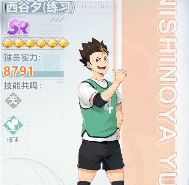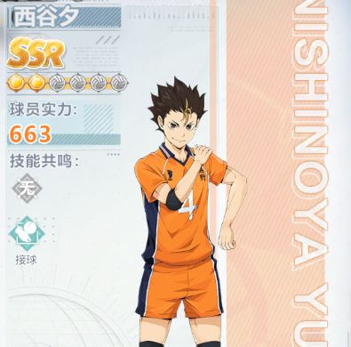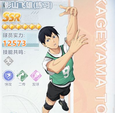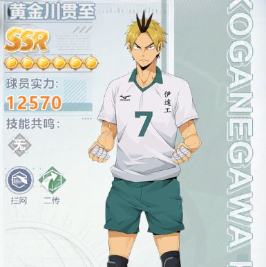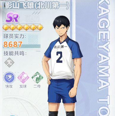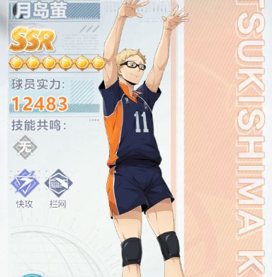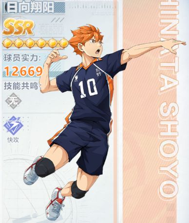 同名角色SSR卡的下位替代,作为开服时期极为稀少的快攻二传手在队伍中起到开游戏的作用(被打),没他打不开日向翔阳。