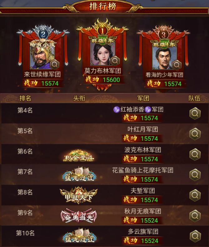 其中,莫力布林 军团以 15600 的战功,成功创造益州之战最高战功,赢下TOP1的宝座,恭喜!