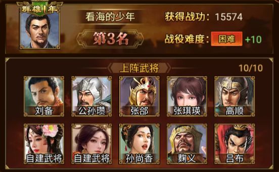 本期益州之战中赢得第三位的是 看海的少年 军团,成功攻破 困难+10。