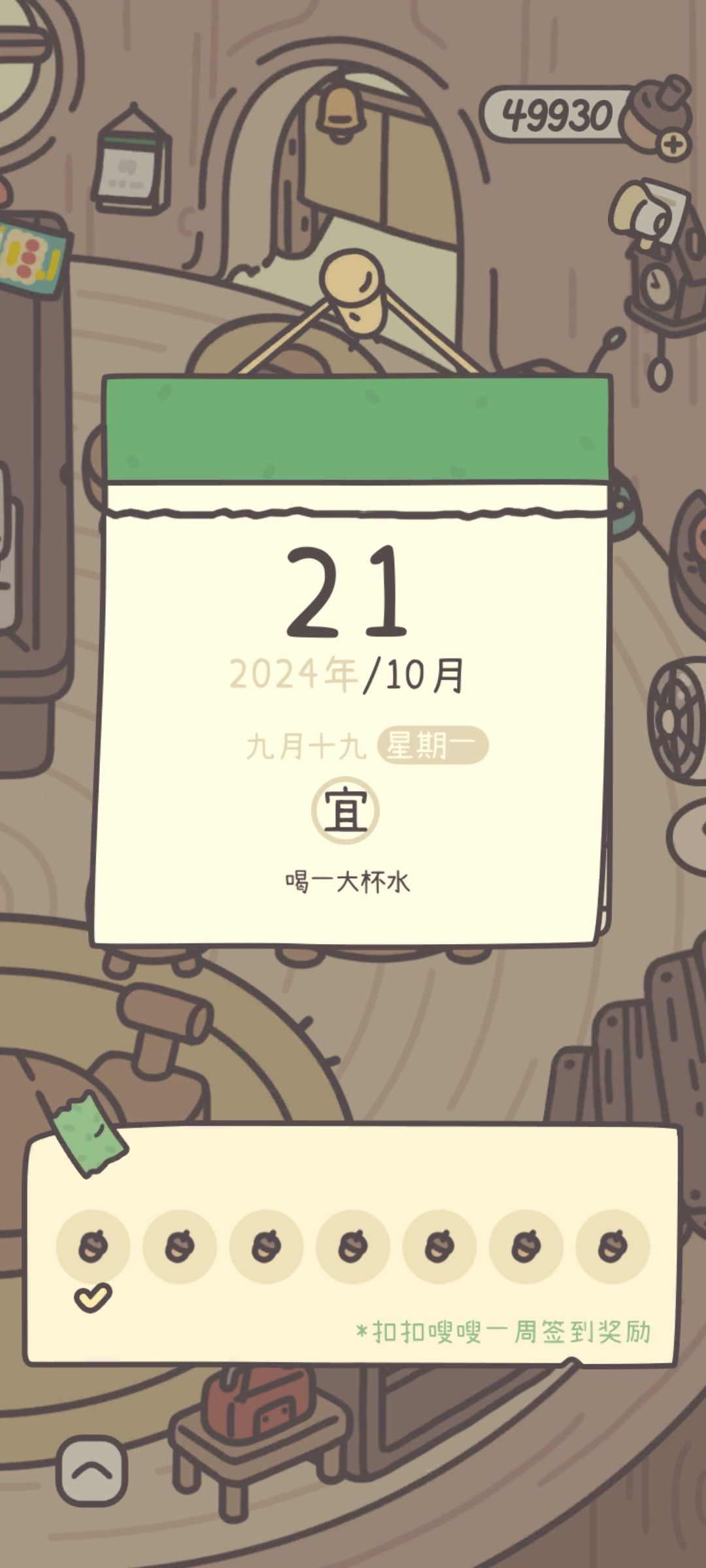 然后让我没想到的是,官方直接整了个大的,今早领完签到一看,一排橡子,觉得官方有点不地道,怎么奖券也不给了。