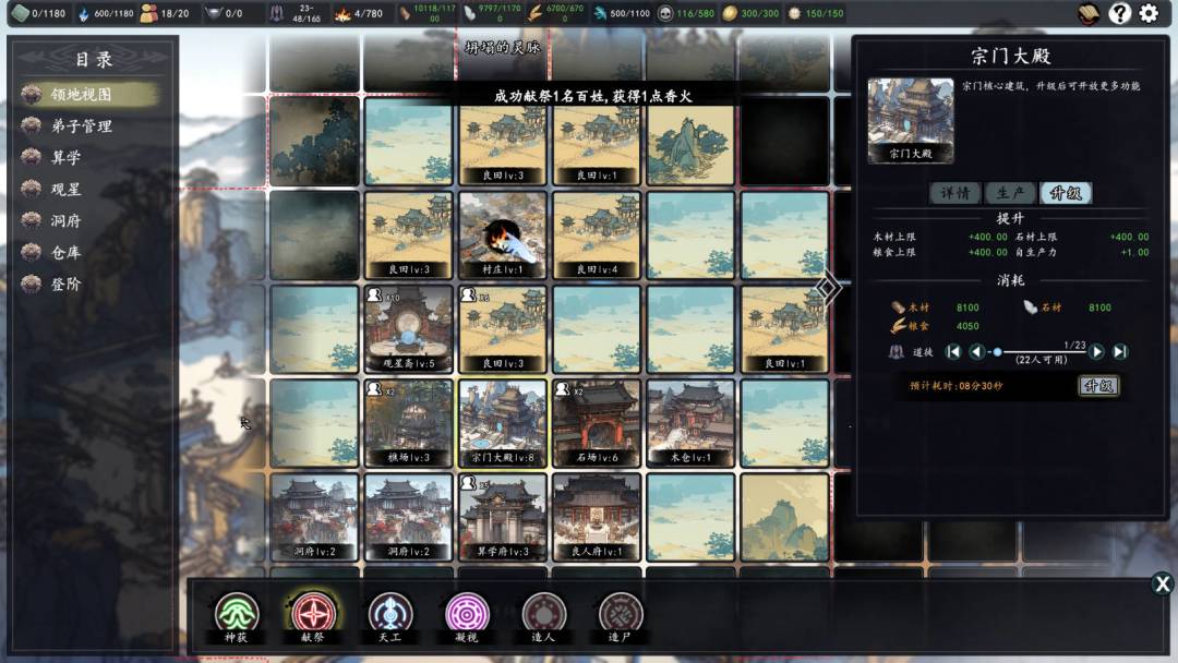 30+产业与功能建筑: 沙盘式的家园建造系统,给您更多选择。去把寂寂无闻的破落山门,扩建成为势倾天下的道门仙宗吧。