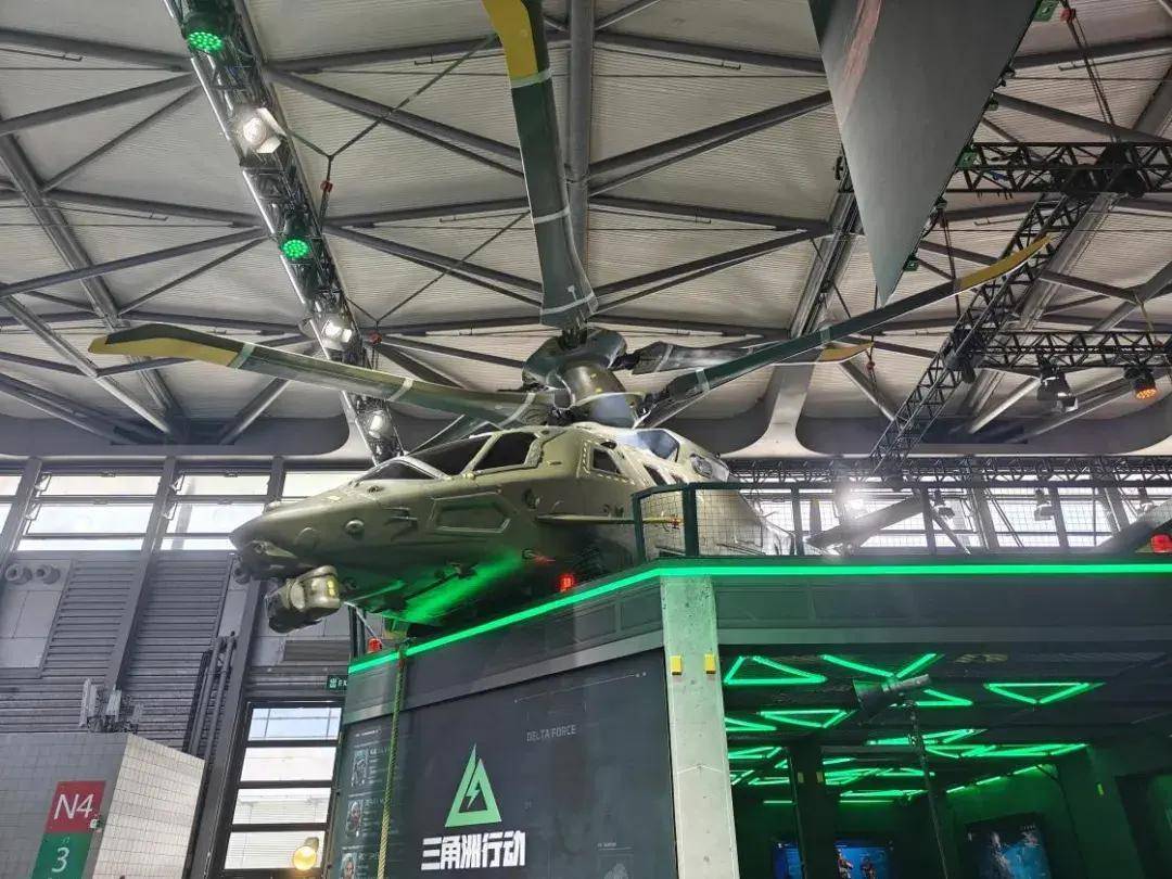 即便放到ChinaJoy这个各大游戏厂商争奇斗艳,只为吸引玩家在人群中多看一眼的盛会当中,《三角洲行动》的展台依然能够体现出一种鹤立鸡群的气质。这部由琳琅天上团队打造的FPS游戏目前还在内测,今年也是第一次参加CJ这般规格的展会。可能正因如此,三角洲项目组有意通过精密的展台布置,给参加CJ的广大玩家们留下对于游戏中硬核军事要素的深刻印象。在N4展馆上空,我老远就能看见一架用玻璃钢打造的黑鹰武装直升机模型。在测试版本的“危险行动”模式中,玩家小队就是便是乘坐这架直升机进场的。