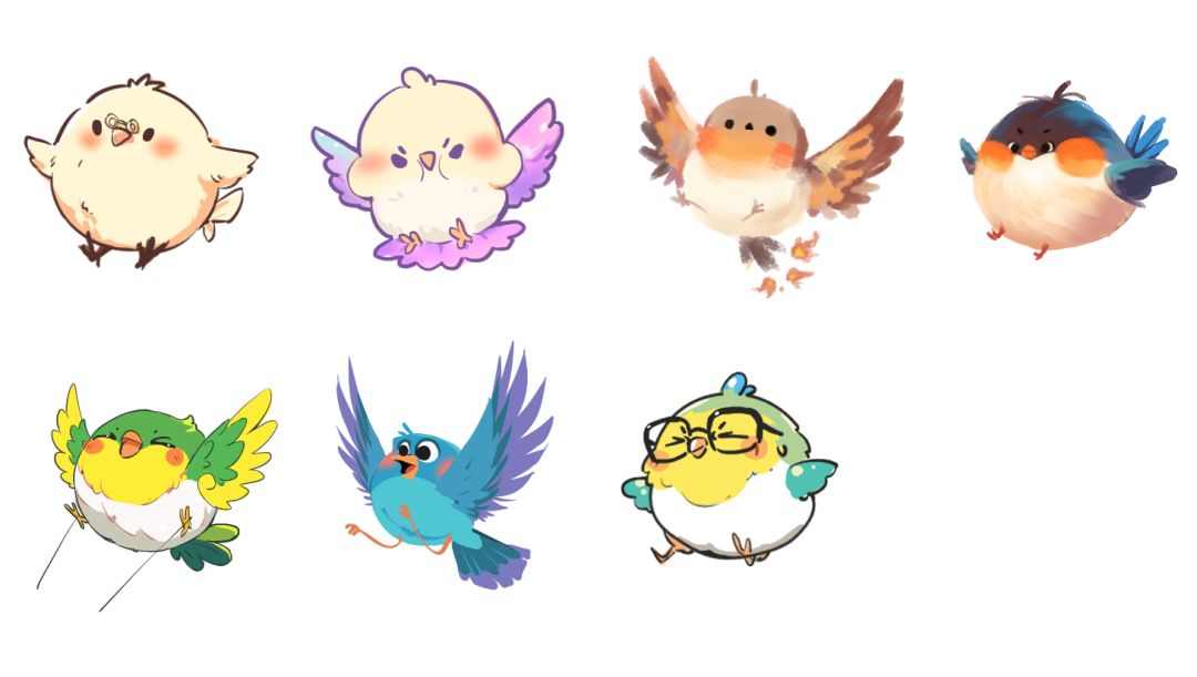 三道老师画的各种风格的鸟