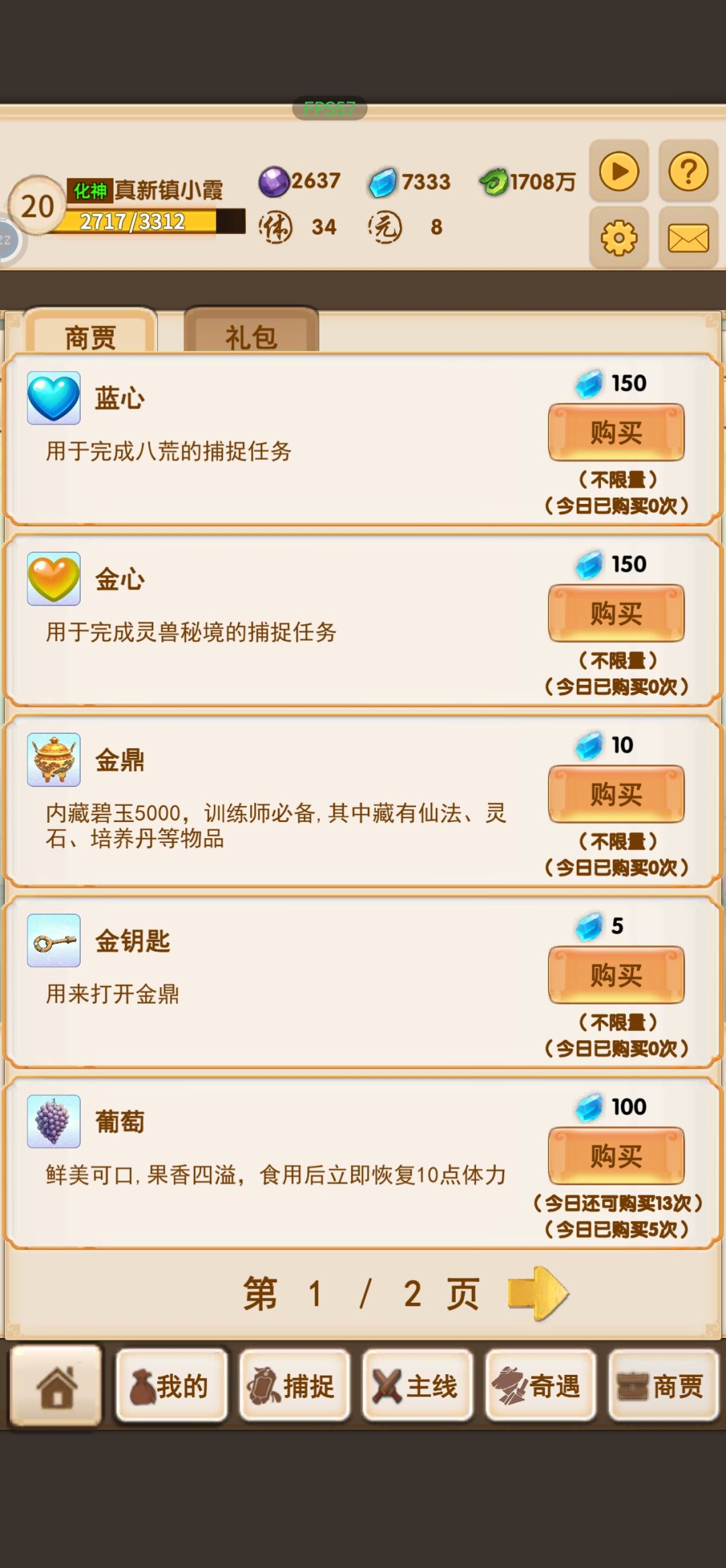 神兽目前分为三个档次金色-紫色-蓝色,获取方式主要为捕捉,分为普通和限时卡池所需的蓝心和金心可以通过商店通过灵石购买和关卡通关后的资源兑换,后边会插图