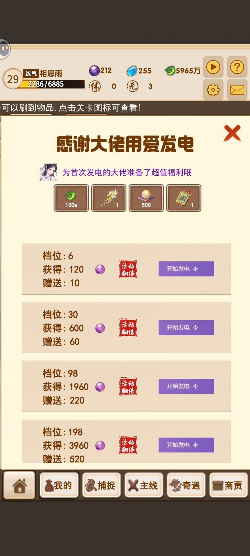 奇遇里每天可以领取体力,紫色石头留着财神,1.5倍转换蓝色石头还有其他一些资源可以获取,大家可以详细看看(等级达到后月卡后边会有一个神秘兑换码入口,找群主私聊可以拿一个金色神兽兑换码