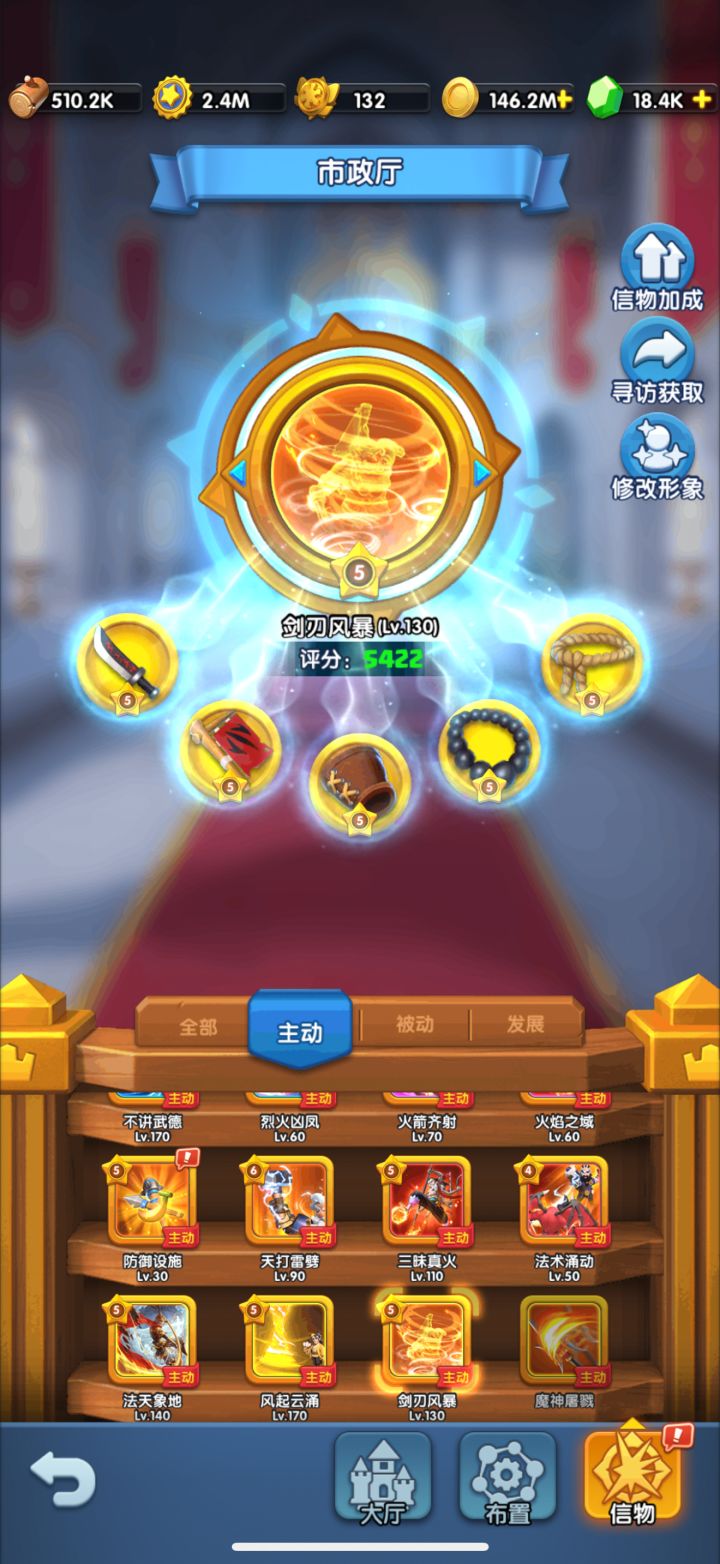 金色信物:剑刃风暴>风起云涌>法相天地>猎杀黑暗>征伐收割>战争智慧(剑刃风暴需要活动氪金2000+不是霸榜大佬不建议! 暂时不建议激活征伐和战争)