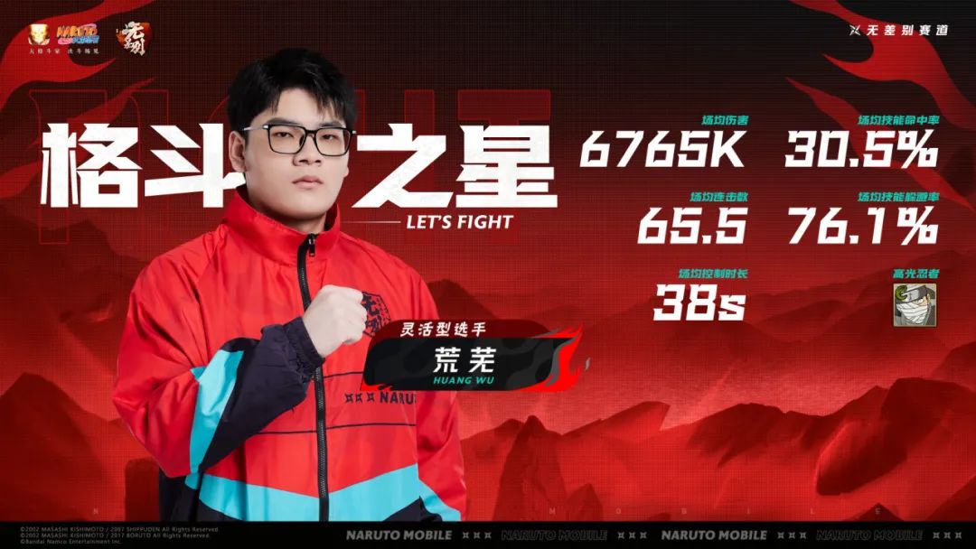 本次秋季赛无差别瑞士轮比赛中,荒芜以场均伤害6765k、场均连击65.5、场均控制时长38s、场均技能命中率30.5%、场均技能躲避率76.1%的成绩,荣获“格斗之星”的称号!让我们一起期待荒芜选手在接下来的秋季赛总决赛中,能有更加精彩的发挥吧!