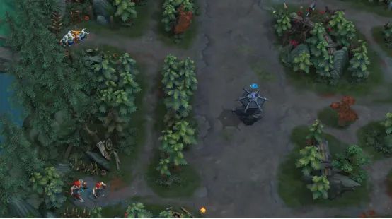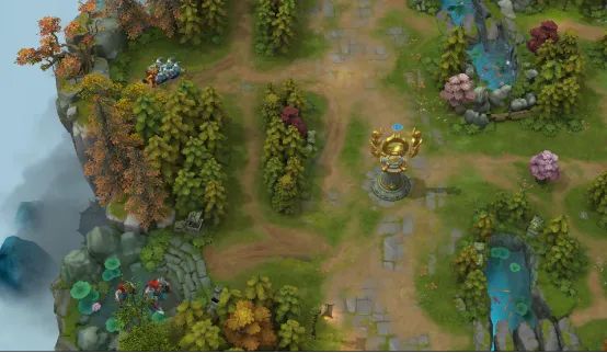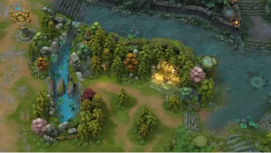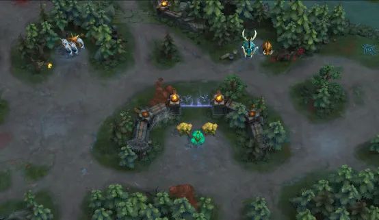 ▍ 劣势路地形及场景调整:新地形新增了劣势路两处野怪刷新点,劣势路英雄在面对敌方强势优势路英雄和辅助压制时,可以暂时退守野怪刷新点进行发育!
