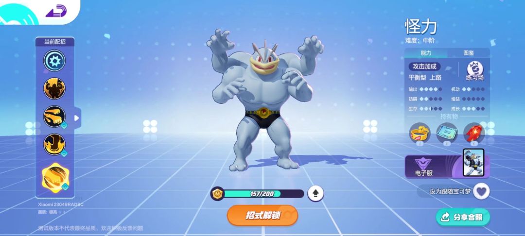 指定方向挥拳,敌方被命中时会附带“击退”效果!释放时5秒内提高防御、特防、移速、攻击!