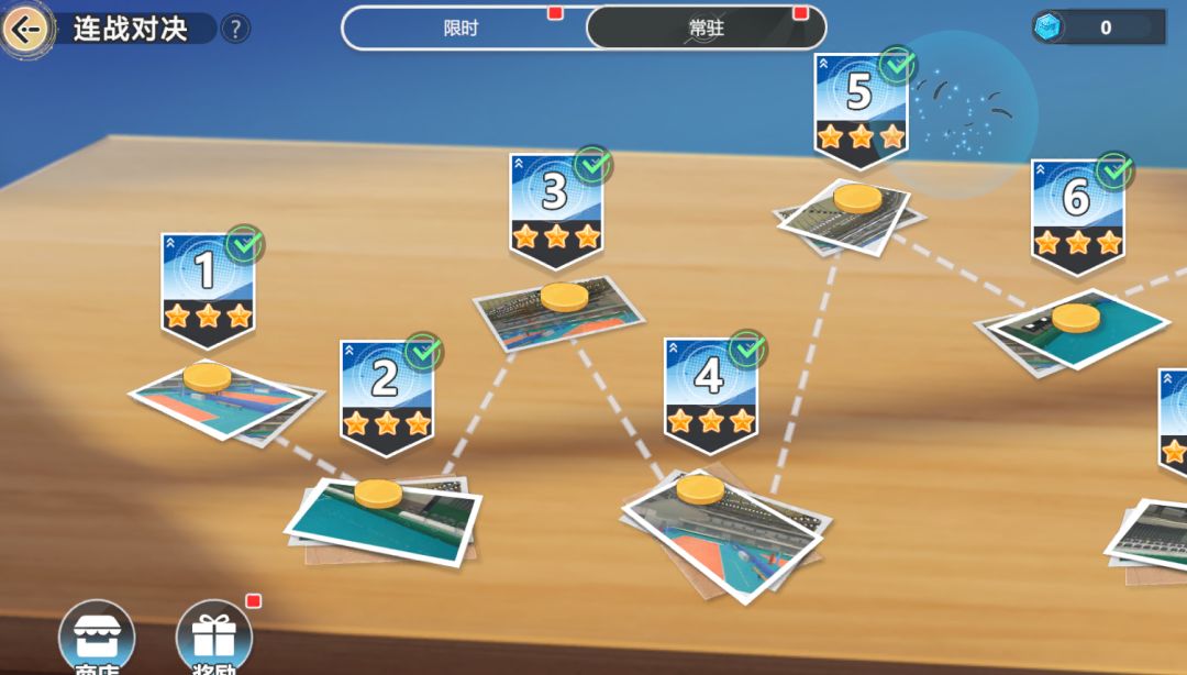 在连战对决模式中,奖励分为通关奖励与星级奖励,分别在首次通关与累计星级达到数目时解锁,常驻关卡下仅可获得一次,限时关卡中则是会随时间重置。