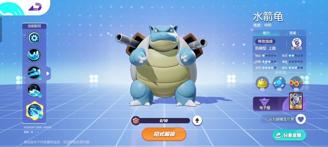 实战演示:水箭龟在游戏中的类型为特攻伤害加成的防御型,推荐与另外一位输出队友一同作战