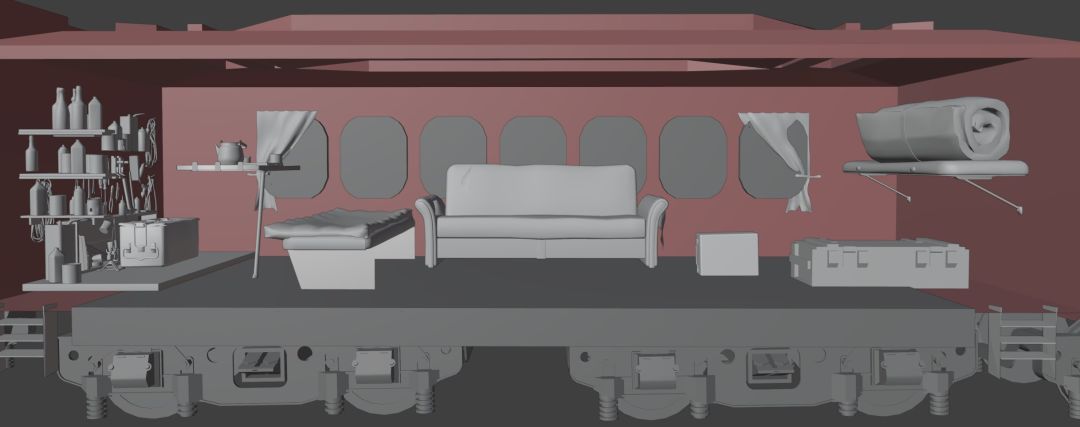 🔸TA—列车白模已完成,场景内贴图正在进行中。