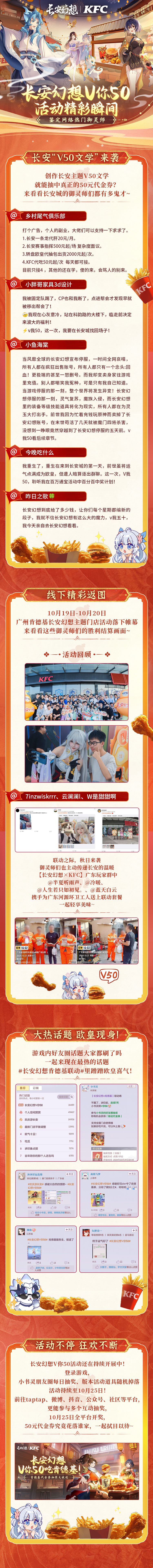现在小长安还在狂撒肯德基50元代金券中,游戏内点赞评论小书灵好友圈、完成联动活动任务,均有机会获得代金券!游戏外前往社媒平台参与互动,下一个抽中的可能就是你~