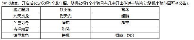 ②鸿宝锦盒:如若不需要,可联系客服QQ800152016兑换50个仙魔灵宝。(锦盒打开后无效)