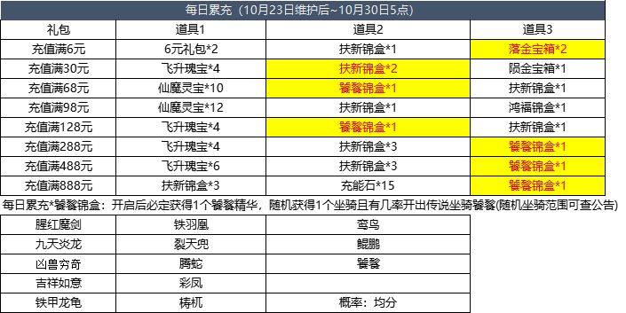 【活动简介】活动期间累计充值达到指定金额即可领取惊喜礼包!