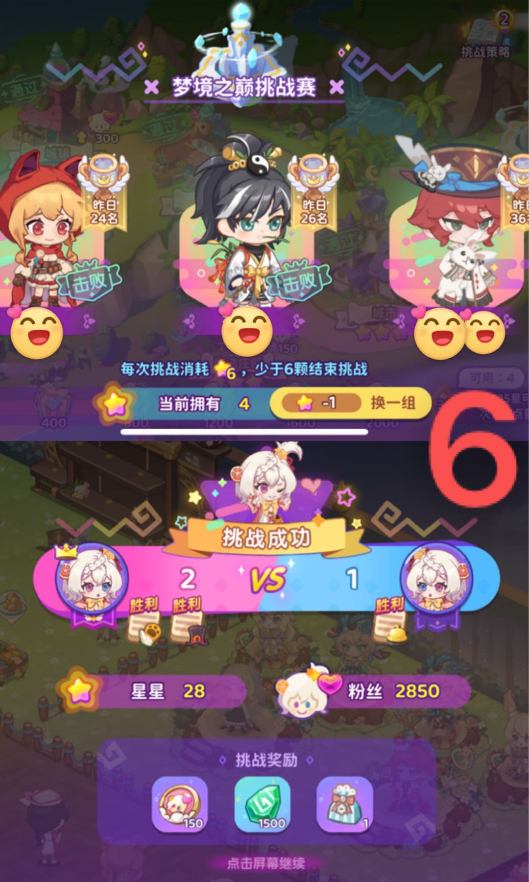 🌟🌟梦境之巅挑战赛:每次挑战消耗6颗星,每刷新组别一次消耗一颗星,不足6颗星自动结束挑战。(图六)
