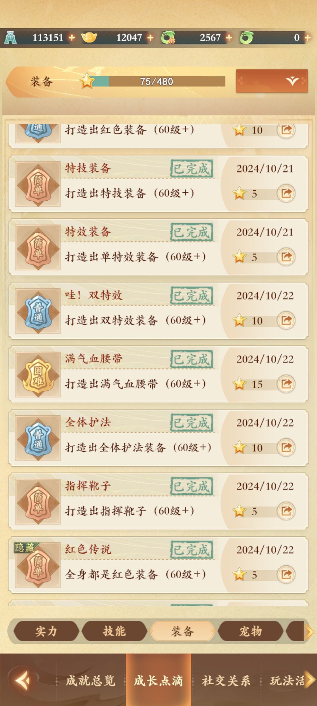 3、打造出红色装备等一系列成就(60级+)乌金石留到60级之后打红色装备做成就