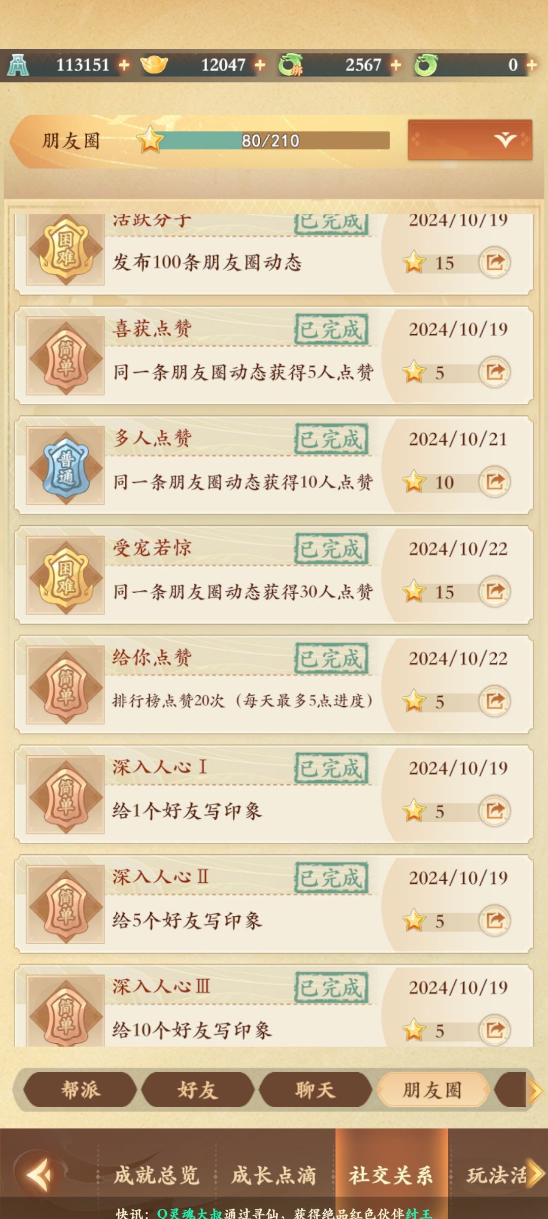 8、给10个好友写印象(15点)
