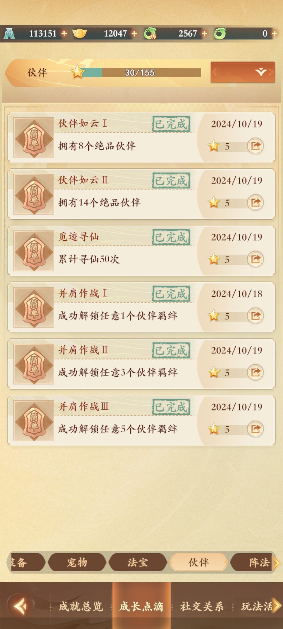 8、激活7种阵法,任意阵法等级达到5级(再往上升很贵,不建议)