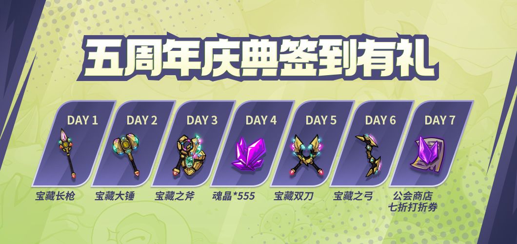 5. 五周年七日签到有礼,完成签到领取海量奖励