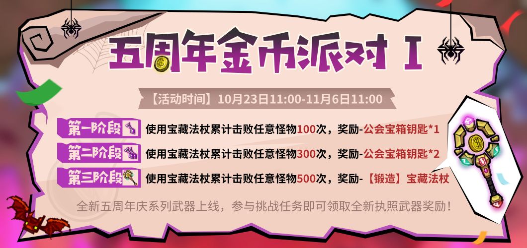 第二阶段:使用宝藏法杖累计击败任意怪物300次,奖励-公会宝箱钥匙*2;