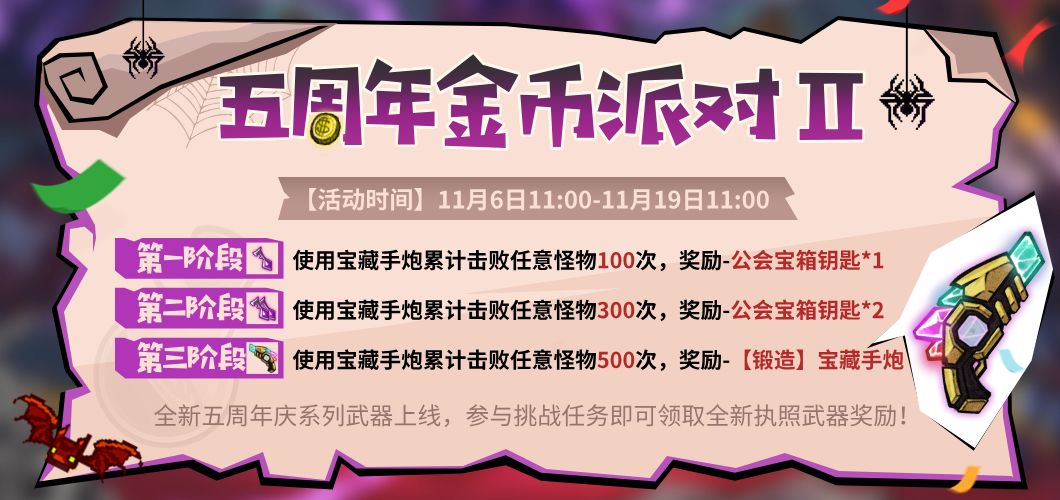 第二阶段:使用宝藏手炮累计击败任意怪物300次,奖励-公会宝箱钥匙*2;