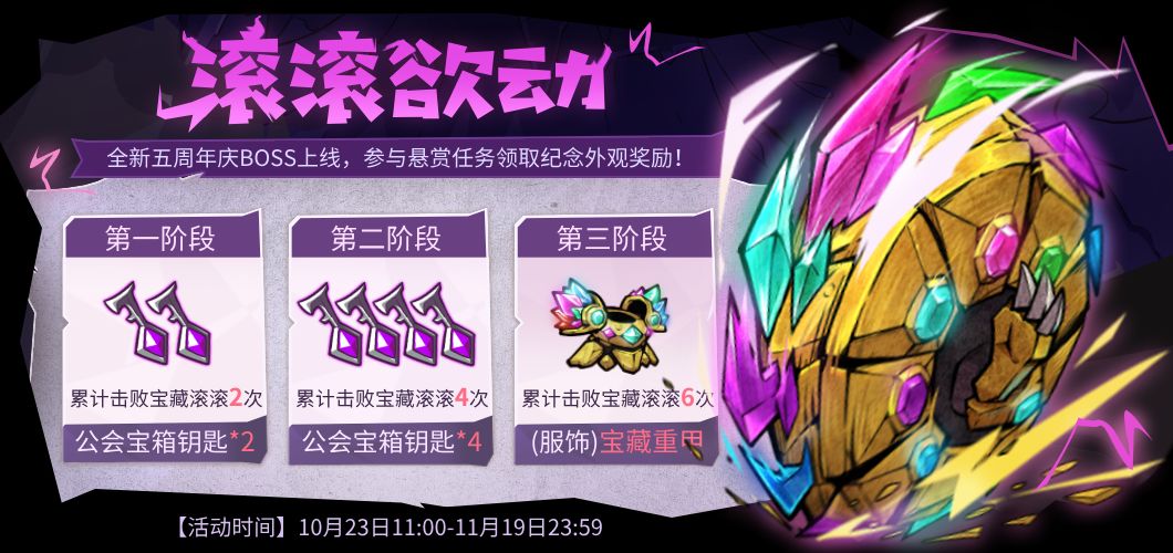 第二阶段:累计击败宝藏滚滚4次,奖励-公会宝箱钥匙*4;