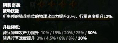 建议选择埃莫瑞斯为主将,主点骑兵天赋保证输出,副点机动天赋增加机动能力,天赋具体如下: