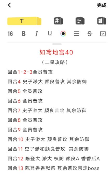 回合10 史子渺大 颜良普攻 其余防御回合11 史子渺和颜良普攻 其余防御回合12 陈登大 渺大 权防 颜良A 香香后A回合13 陈登香香献祭 其余普攻带走boss