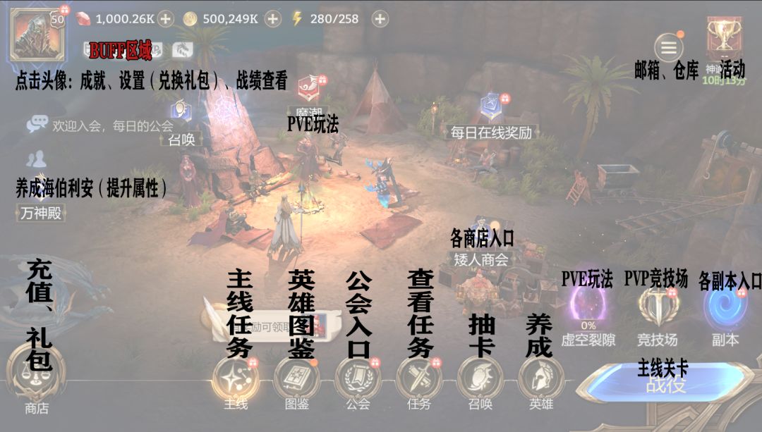 公会界面主要是用来参与巨龙遗迹、完成公会任务,还可通过公会商店使用公会币购买各类道具。建议大家加一个活跃的公会,这样可提升资源获取。