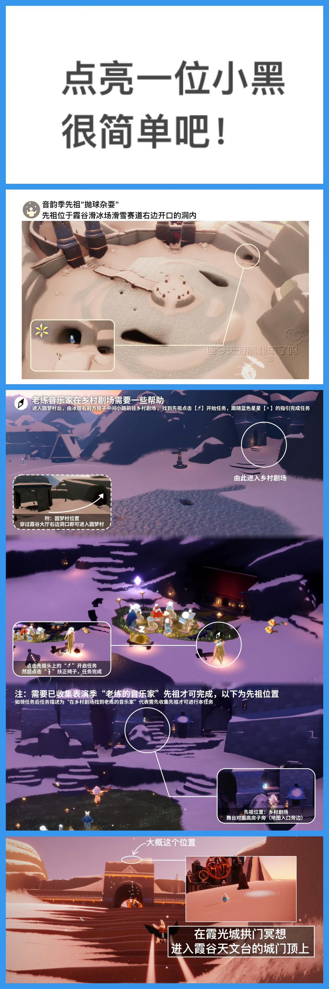新日常任务需要收集表演季先祖【老练音乐家】后才能完成,如果尚未收集,任务提示会变更为“在圆梦村剧场找到老练音乐家”,此时需要先收集先祖后再按图示流程完成任务。