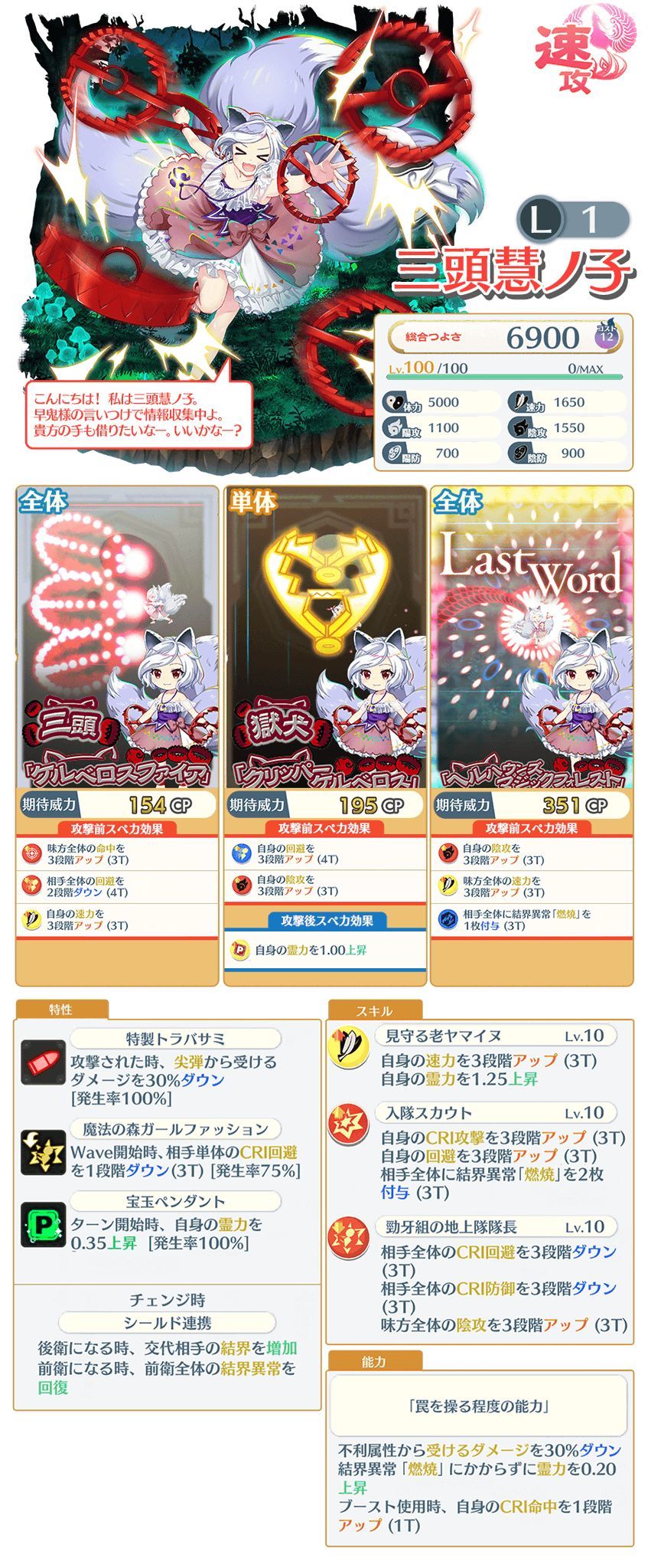 没有异破,有还能看一点全体拐,自身的基础buff还算够看,lw的斩裂补正可谓给的很多,但是白字威力相比较另外两位差了很多,慧之子最高的倒数第二段白字威力才14.73,在阴攻速度双面板下也许能有发挥,