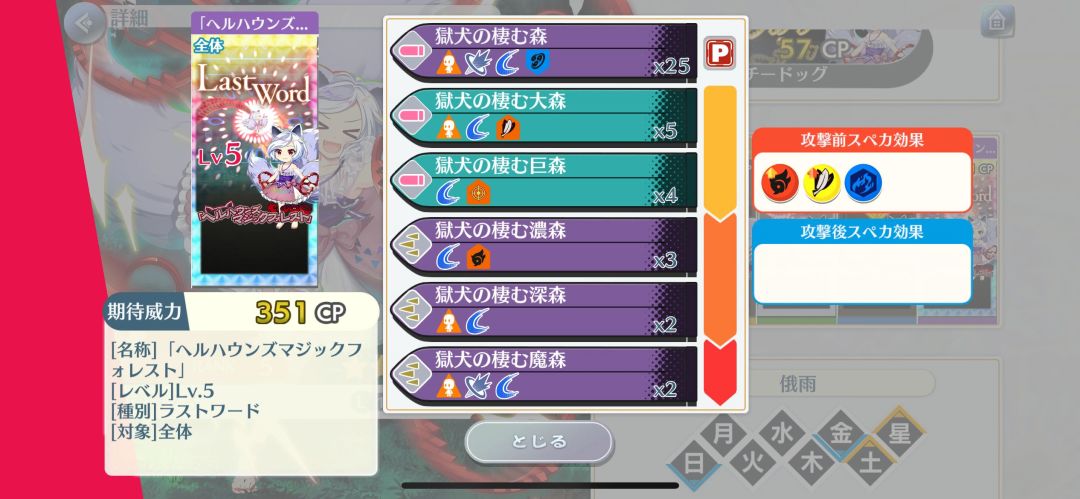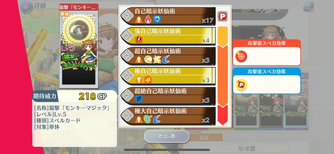 特攻:妖兽、兽、人类、魔法使、魔法之森、僧侣、16段外加幻想乡,