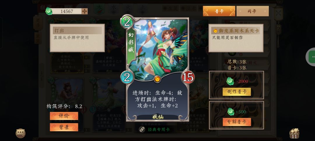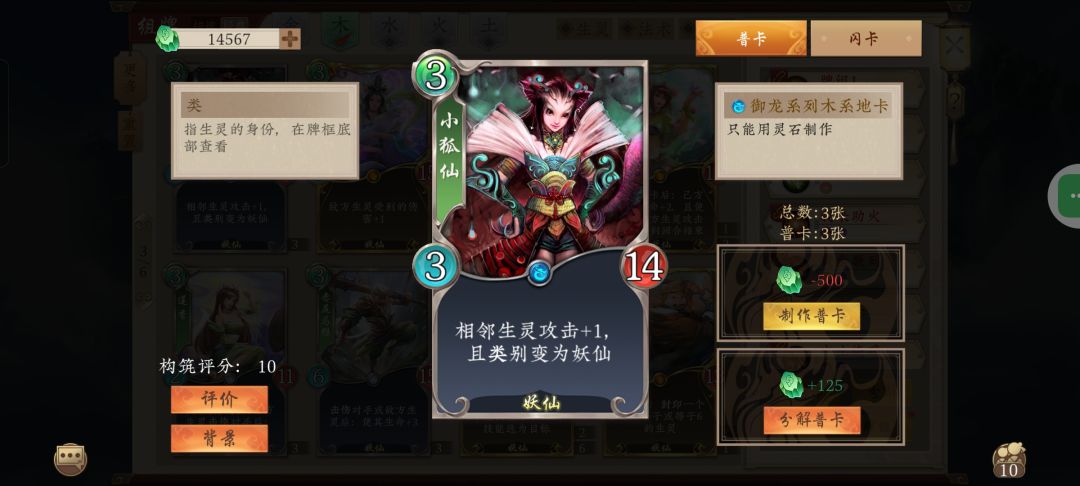 妖仙体系收益牌不多(其实五行师哪个收益牌都不多),加上五行师机制对非进场生灵不友好,笨得很。能玩的卡组不多,希望通过数值带带,做成类似化生金那样。由于化生金更多还是靠灵童白虎珈蓝限制对手才有的强度,妖仙限制少点,应该需要给更多数值。