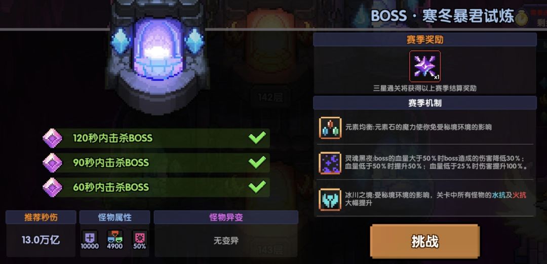关卡buff--灵魂黑夜:boss的血量大于50%时,boss造成的伤害降低30%,血量低于50%时增加50%,血量低于25%时增加100%